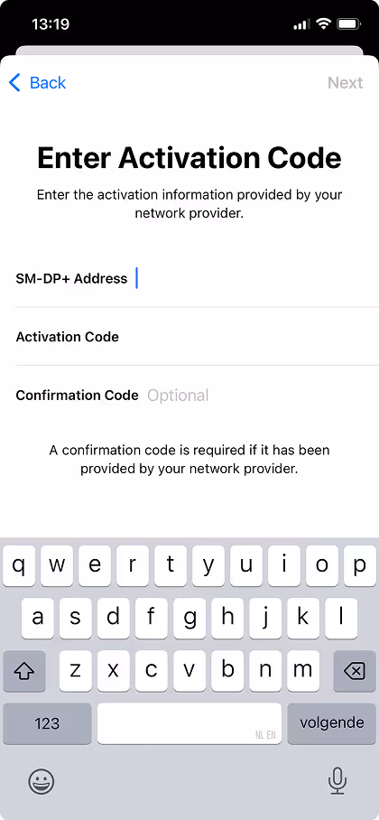 • Skriv inn SM-DP+-adresse og aktiveringskode i «min eSIM».