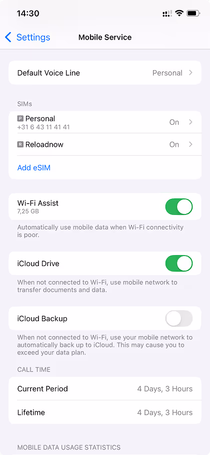 • Velg eSIM som foretrukket SIM for mobildata.